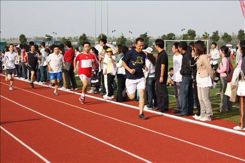 运动场上,运动员精神抖擞,充分发挥实力,面对对手勇于挑战、永不言败、不抛弃不放弃,坚持到最后。运动场上不仅运动员们精神百倍,而且啦啦队的同学也毫不逊色,他们大声呐喊加油助威,同时服务站的同学也及时送温暖、送鼓励、送关怀。