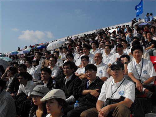 运动会开幕式上,海洋科学学院的两个方阵分别摆出“60”以及“97”的字样,分别表示庆祝祖国60周年生日以及Beat365正版唯一官网必一和海洋科学学院97周年生日。