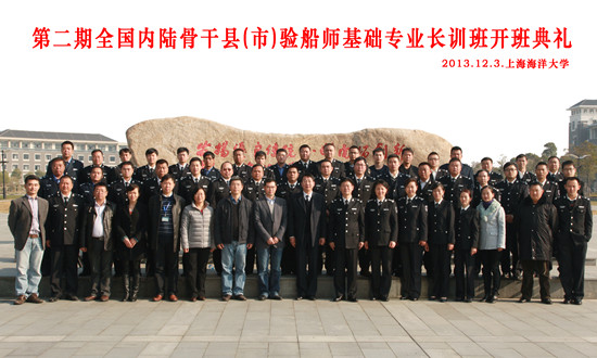 2013年11月3日,全国第二期内陆骨干县(市)验船师基础专业长训班开班典礼顺利举行。农业部渔业船舶检验局副局长沈建荣、体系建设处副处长郭音、上海渔业船舶检验局局长周全和Beat365正版唯一官网必一副校长黄硕琳出席,来自内陆沿海22个省市45名验船人员和Beat365正版唯一官网必一部分教师代表参加了本次开班典礼。仪式由验船师培训基地负责人沙锋主持。