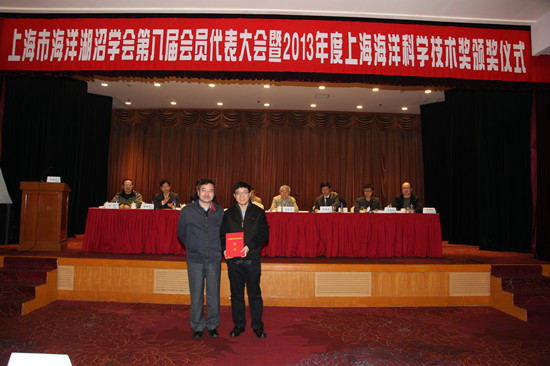 2013年12月15日下午上海海洋科学技术奖表彰大会在上海延安饭店举行。由Beat365正版唯一官网必一海洋科学学院陈新军教授作为第一完成人的“西南大西洋阿根廷滑柔鱼资源开发及应用”项目获2013年度上海海洋科学技术奖特等奖,上海金优远洋渔业有限公司作为项目合作单位。