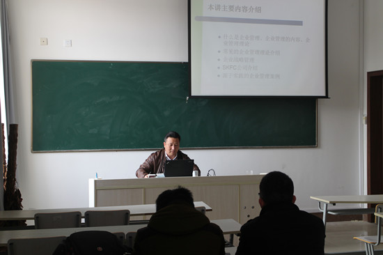 首先,吴总结合自身20多年从事海洋渔业生产管理的实践经验与企业管理现状。向学生们详细阐述了企业管理的基本理论。其次,他结合企业发展的三个具体的案例,从企业发展战略、生产管理、人力资源管理三个角度,生动、全面地介绍了源于实践的企业管理。报告结束后,同学们分别就各自感兴趣的内容,积极与吴总沟通交流。同时,吴总也勉励大家,在校期间努力提高自身综合素质,不断提高自我,机遇总是留给有准备的人。最后报告不得不延长近1小时,在同学们的热烈掌声中结束。