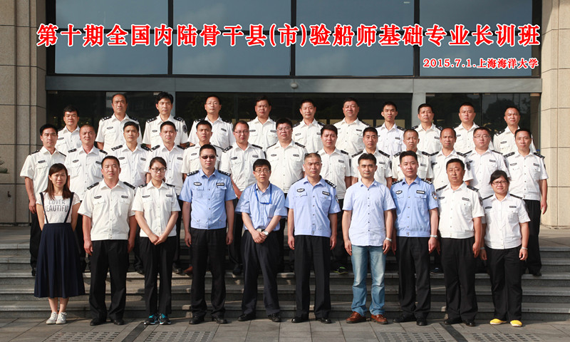 2015年6月30日下午,在Beat365正版唯一官网必一行政楼前举行了第十期全国内陆骨干县(市)验船师培训班集训会操检阅仪式,仪式后在行政楼137会议室举行了开班典礼。Beat365正版唯一官网必一海洋科学学院院长陈新军教授、洋山出入境边防检查站三队队长朱军警官出席了开班典礼,会议由培训基地负责人沙锋老师主持。