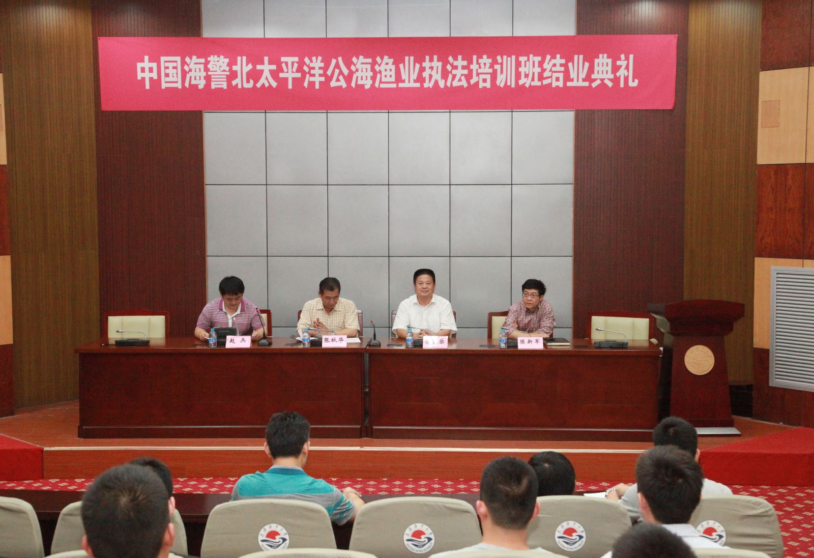 中国海警北太平洋公海渔业执法第二期培训班于2016年9月6日至30日在我校顺利举行。9月29日下午,在Beat365正版唯一官网必一行政楼137会议室隆重举行了结业典礼,中国海警局东海分局张秋华副局长和Beat365正版唯一官网必一李家乐副校长出席了本次结业典礼并做了重要讲话,会议由中国海警局司令部赵兵调研员主持。参加本次结业典礼的还有海洋科学学院的领导、教师代表以及25名海警学员。