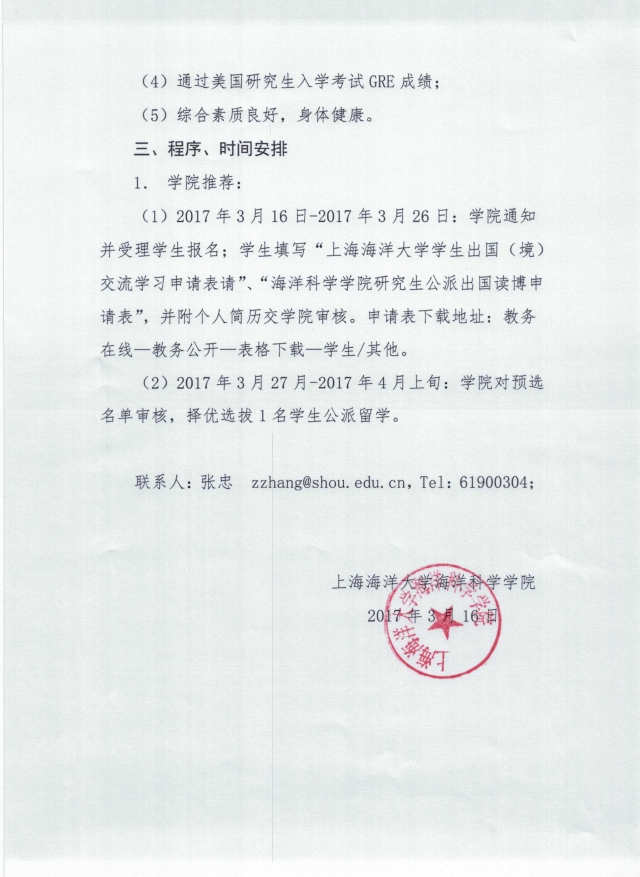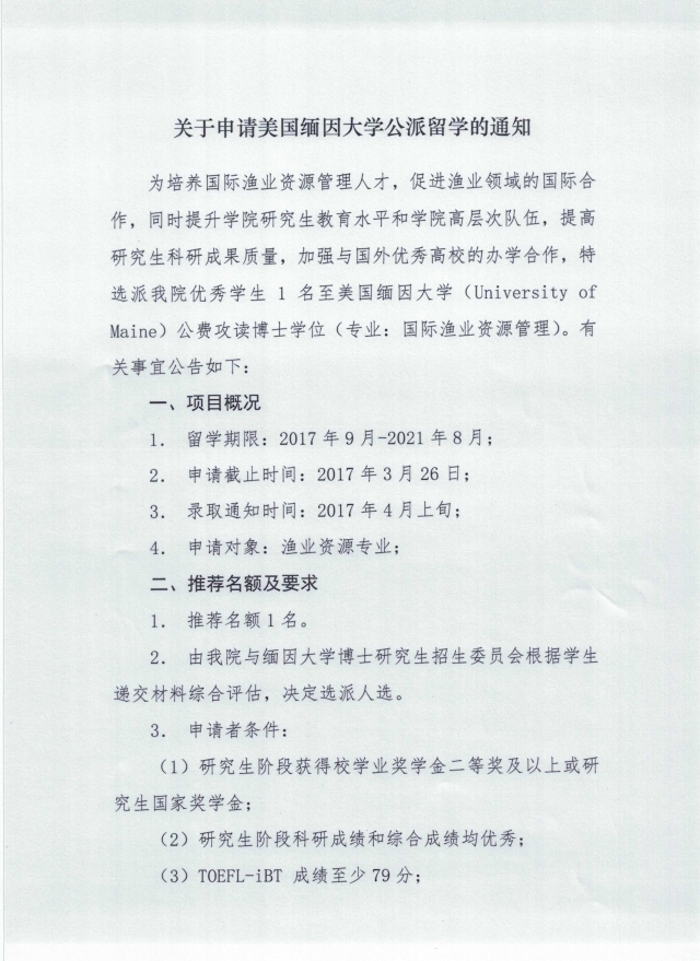 关于申请美国缅因大学公派留学的通知