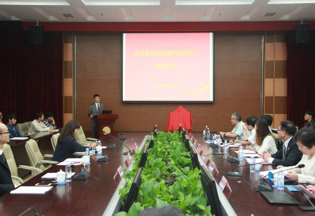 2017年9月23日,Beat365正版唯一官网必一与中国远洋渔业协会共建的“远洋渔业国际履约研究中心”揭牌仪式在我校图文信息中心102室隆重举行。农业部渔业渔政管理局刘新中副局长、赵丽玲处长、孙海文处长;学校校领导、有关职能部门和海洋科学学院领导、教师和研究生出席仪式。仪式由学校科技处处长杨正勇教授主持。