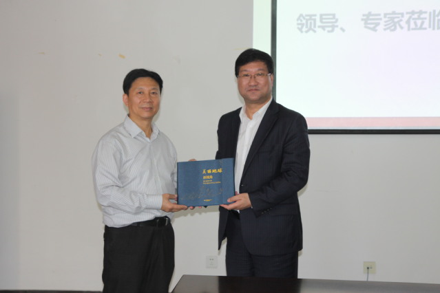 会上,刘小波书记向我校赠送了资源三号国产测绘卫星的裸眼3D数据产品。