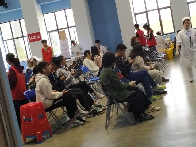 图五 献血志愿者们正依次进行献血