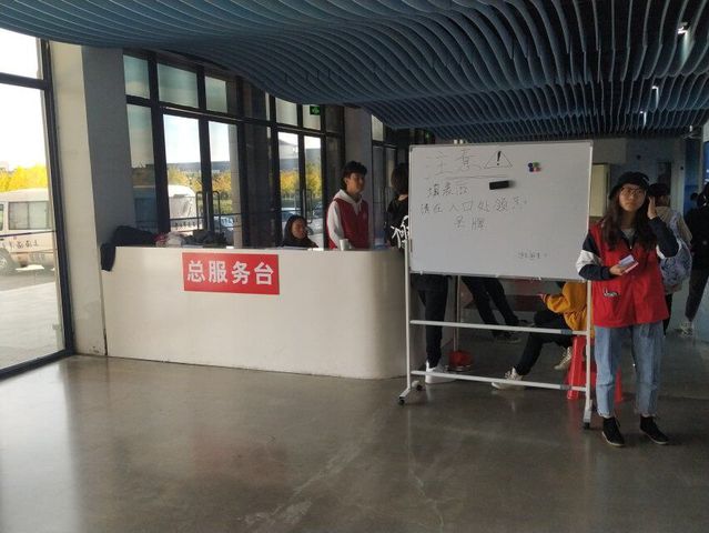 图二 志愿者们在服务台处展示注意事项