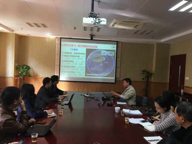座谈会上,陈院长首先从国家实验教学中心的建设历程、平台建设情况和承担的各项教学任务做了详细介绍;我院教师魏永亮也将海洋学院实验教学中心的建设情况作了介绍,双方对我院申报上海市海洋科学实验教学中心的历程进行讨论,交流经验。