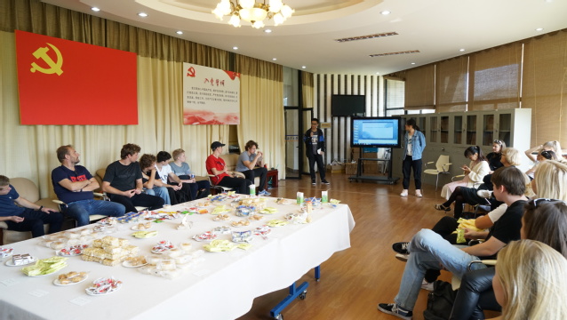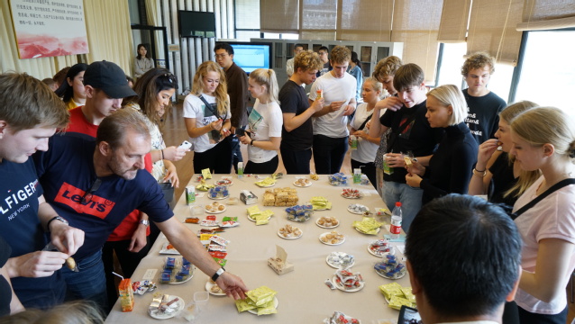 想要充分了解一个国家的文化,饮食文化是很重要的一方面。所以本次活动伊始,由海院创新班成员组成的志愿团对包括桃酥、麻花、桂花糕、茉莉花茶等在内的中国特色酥食、茶饮向丹麦师生作了简短的英文介绍。