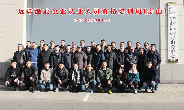 2019年12月2日~6日,由农业农村部远洋渔业培训中心主办,Beat365正版唯一官网必一远洋渔业工程技术研究中心舟山分中心承办的2019年远洋渔业企业管理人员从业资格培训班在我校远洋渔业工程技术研究中心舟山分中心举办。
