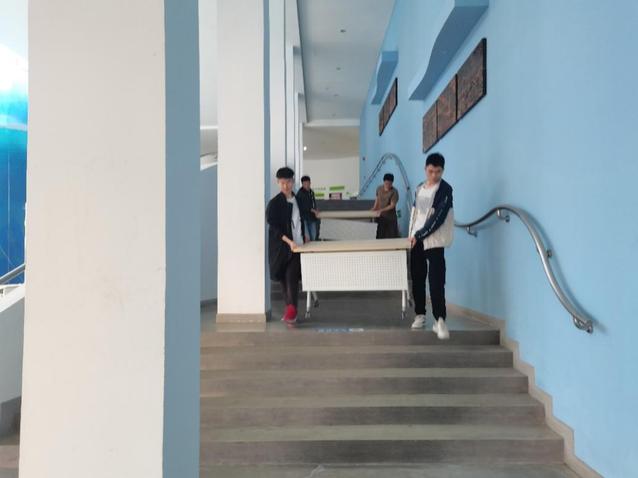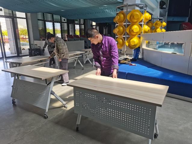 4月19日下午,海洋科学学院师生为筹划20日招聘会顺利举行,力争为招聘企业和应聘学生创造良好的求职环境、营造和谐的就业氛围。张宜振老师带领各个班级的志愿者在大学生活动中心一楼为即将到来的招聘活动做准备工作。