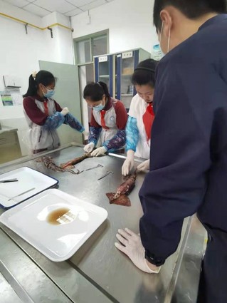 而我们的带教研究生们也都认真热情的为同学们解答问题。同时对临港一中同学们在解剖中遇到的困难进行悉心指导。