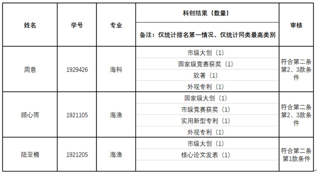 根据《海洋科学学院创新班结业荣誉证书授予工作细则》(沪海大海洋科学学院院办〔2020〕8号),经个人申请、学院审定,海洋科学学院对拟评选2019级《创新班结业荣誉证书》候选人名单予以公示。