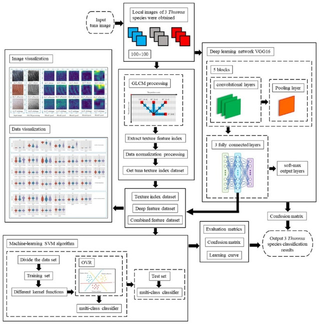 论文根据中国远洋渔业数据中心观察员、以及远洋渔业调查中心“淞航号”号开展农业农村部公海渔业资源综合科学调查所收集的金枪鱼图像,通过计算机视觉技术对金枪鱼表型纹理信息进行多样化可解释性处理和利用不同核函数SVM算法进行性能分析等,进而得到金枪鱼表型纹理信息智能化识别结果。
