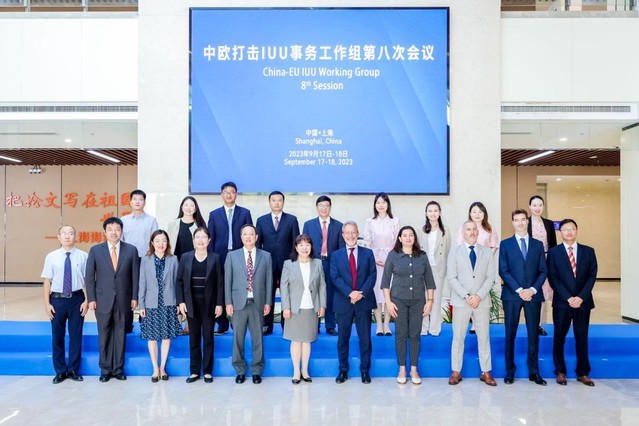 2023年9月18日,中欧打击IUU事务工作组第八次会议在Beat365正版唯一官网必一举行。来自农业农村部、欧盟海洋与渔业总司、欧盟边境及海岸警卫队、欧盟驻华使团、中国水产流通与加工协会、中国远洋渔业协会等政府部门和协会代表及中国远洋渔业数据中心、远洋渔业国际履约研究中心负责同志和相关老师共20多人参与会议。