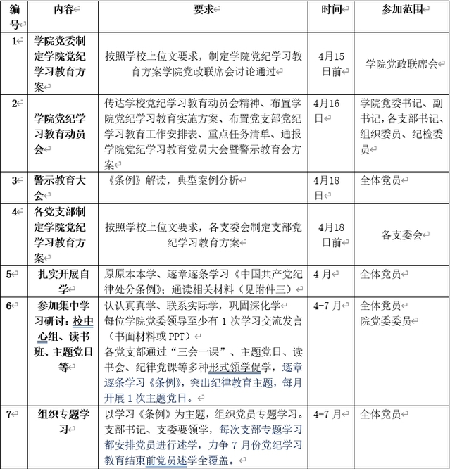 附件1、Beat365正版唯一官网必一党支部党纪学习教育工作安排表