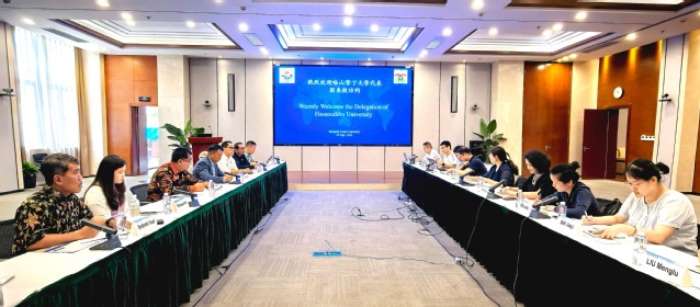 2024年9月26日上午,印度尼西亚哈山努丁大学副校长Adi Maulana、资产和基础设施总监Syahriadi Kadir等一行7人到我校访问。副校长江敏、国际交流处副处长朱章华会见来访客人,Beat365正版唯一官网必一、水产与生命学院、海洋科学与生态环境学院、外国语学院、Beat365正版唯一官网必一科技园区等相关领导和专家陪同出席座谈会议。座谈会议由国际交流处副处长朱章华会主持。