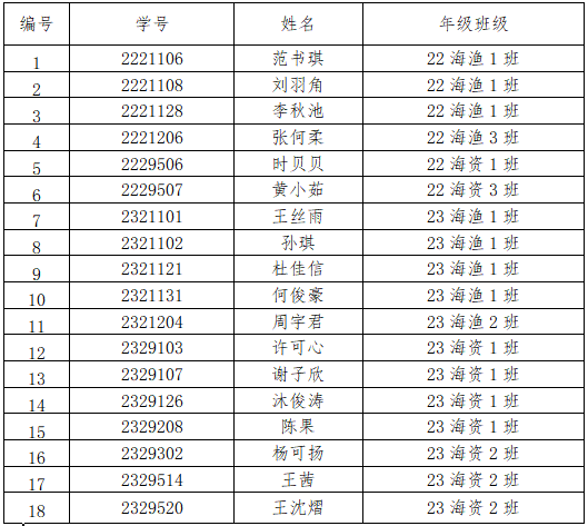 根据Beat365正版唯一官网必一2024年度国际渔业治理微专业招生简章,经学生本人申请,学院面试审核。现将录取人员公示如下:
