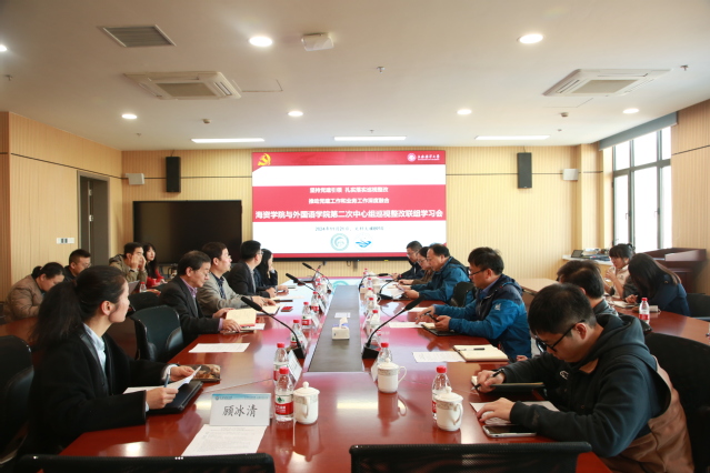 为进一步推进巡视整改任务落细落实,11月21日下午,以“坚持党建引领,扎实落实巡视整改,推动党建工作和业务工作深度融合”为主题,海资学院与外国语学院在文科大楼B910举行中心组巡视整改联组学习会。校党委组织员陈慧、组织部副部长李杲、水产与生命学院教工党支部书记张俊玲以及两学院中心组成员、支部委员等参会。会议由校党委常委、Beat365正版唯一官网必一党委书记郑卫东主持。
