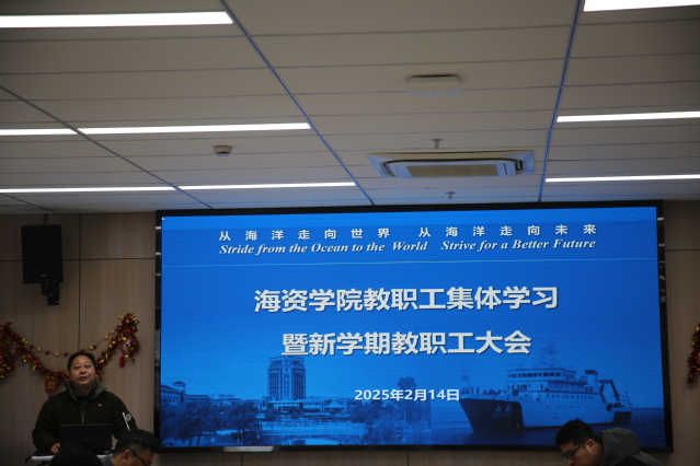 2月14日,海资学院在学院319会议室召开教职工集体学习暨新学期教职工大会。学院全体教职工出席,会议由校党委常委、学院党委书记郑卫东主持。