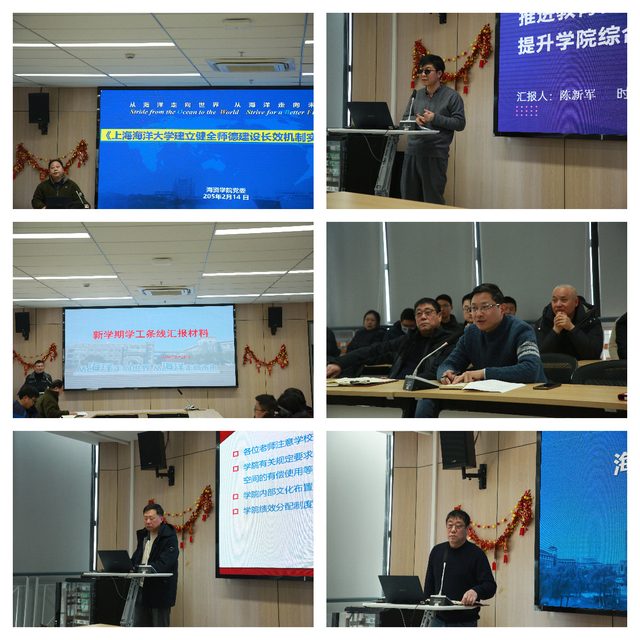 陈新军院长在讲话中对全体教职工在假期中的辛勤付出表示感谢,并对新学期的工作提出了明确要求。他指出,新学期是学院发展的关键时期,全体教职工要凝心聚力,团结协作,以更高的标准、更严的要求、更实的作风,推动学院各项工作取得新突破。他表示,2025年是学院发展中极为重要的一年。是十四五收官之年,是十五五布局之年,是新学院融合之年,是评估巡视整改年,是远洋发展40周年,任务很重很艰巨。他要求,学院要继续加强学科建设与智库平台建设,要深化科研项目与科技奖励深化综合改革,要提升学院治理水平,要加强与政府及社会服务工作。