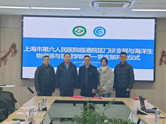 3月4日,上海市第六人民医院临港院区皮肤科副主任,主任医师、门诊党支部书记王雄来校交流指导。在海资学院319会议室与本科生第一、第二党支部举行了基层党支部共建签约仪式。校党委常委、海资学院党委书记郑卫东,学院专职组织员刘丙宝和各支部书记出席。本科生第一、第二党支部师生党员代表共同见证了本次签约。