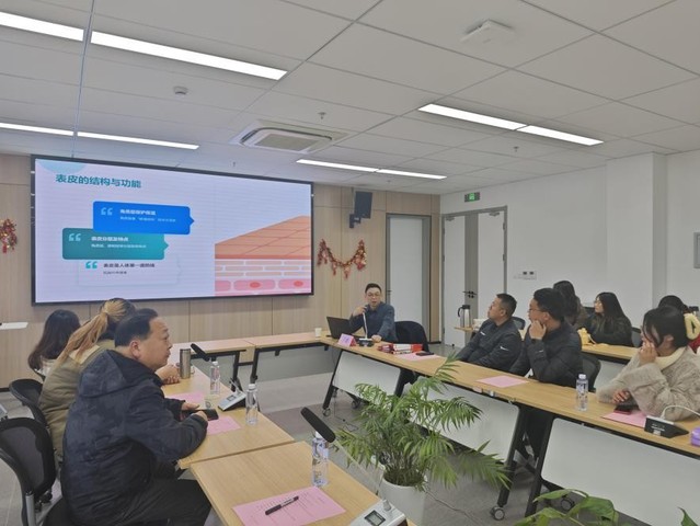 签约仪式结束后,王雄为海资学院师生党员们带来《皮肤科学护理及晒伤处理》科普讲座。从皮肤的性质、结构功能及其护理方法等方面为与会师生做了详细介绍。交流讨论环节,针对与会师生提出的皮肤健康护理、祛痘美容等相关问题,王雄一一做了解答。