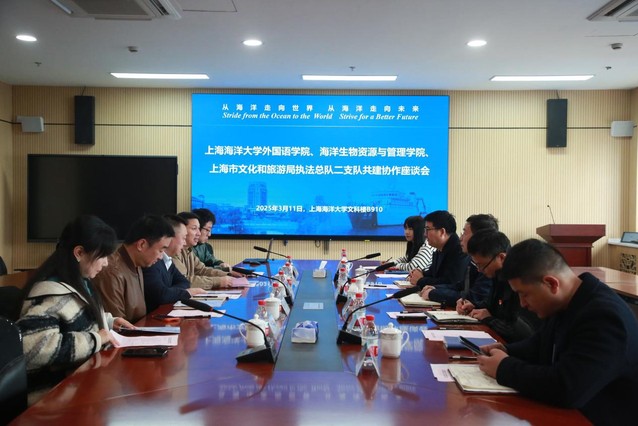 为贯彻落实党的二十大和二十届二中、三中全会精神,深入学习贯彻习近平文化思想,2025年3月11日, 海资学院、外语学院与上海市文化和旅游局执法总队二支队在文科楼910会议室召开共建协作座谈会。三方围绕党建引领、人才培养、资源共享等领域达成深度合作意向,以党建互学互鉴推动校企资源共享,共同在人才培养等方面作出新的贡献。