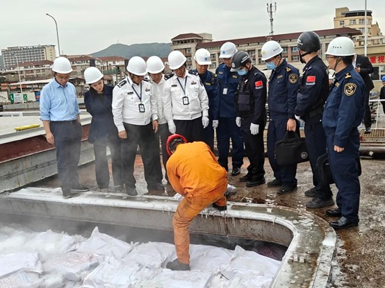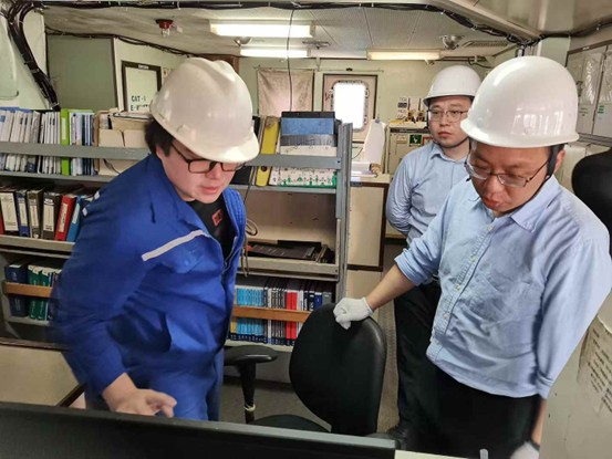 夏亮团队前期根据《港口国措施协定》,协助检查机关核验船舶申报信息,与区域渔业管理组织提供的涉非法捕捞船舶名单进行比对,制作检查报告模板,细化完善检查流程。4月16日当天,涉渔外国籍船舶进入舟山港后,夏亮团队协助渔政、海事、海关、移民管理等检查机关登临船舶,对船舶及船员证书、转运许可、作业日志、运输凭证、渔获物单据等证书文件,以及船舶标识及船位监测(VMS)等设备进行查验,并对渔获物品种、数量等情况进行核对,未发现其涉嫌非法捕捞活动,顺利完成了我国加入协定后首次登检涉渔外国籍船舶的技术支撑保障工作。