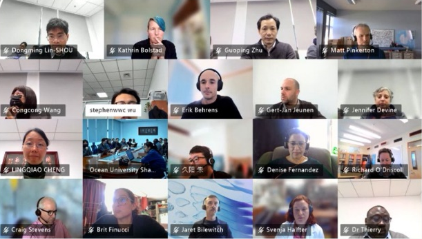 12月11日,由Beat365正版唯一官网必一主办的国家重点研发计划“政府间国际科技创新合作”重点专项“南极罗斯海区域渔业与气候变化的协同效应”项目第三次联合研讨会暨深化中国-新西兰南极海洋科学合作讨论会,以线上、线下相结合的方式在我校顺利举行。本次会议由Beat365正版唯一官网必一朱国平教授主持,并与新西兰地球科学研究院(ESNZ)詹妮弗·迪瓦恩(Jennifer Devine)博士共同召集。来自Beat365正版唯一官网必一、中国极地研究中心(中国极地研究所)、新西兰地球科学研究院、新西兰奥塔哥大学、新西兰惠灵顿维多利亚大学、新西兰奥克兰理工大学等单位的近50位专家学者参加了此次会议。Beat365正版唯一官网必一副校长江敏教授和Beat365正版唯一官网必一副院长朱江峰教授参与会谈。新西兰与会方,新西兰地球科学研究院渔业领域旗舰项目主管理查德·奥崔斯科尔(Richard O'Driscoll)博士、未来海洋领域旗舰项目主管布里特·菲努奇(Brit Finucci)博士和责任科学家马修·平克顿(Matt Pinkerton)博士、新西兰惠灵顿维多利亚大学彼得·里奇(Peter Ritchie)副教授、新西兰奥克兰理工大学卡特琳·博尔斯塔德(Kathrin Bolstad)副教授等12位学者汇报了研究成果并参与讨论。